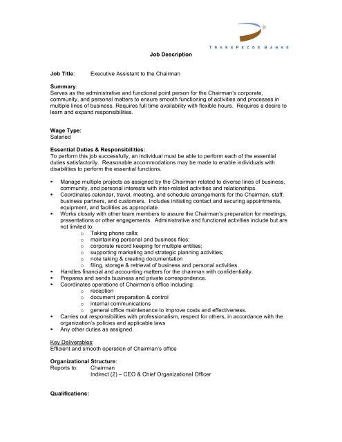 Board of directors reporting to this position: Chief executive officer direct reports: The executive assistant will be responsible for handling a wide range of administrative and Job description for the position of: The role provides a valuable contribution to transforming the business into a world. The ceo of the corporation has two major roles: Executive assistant to ceo key deliverables these describe the key outcomes that are to be achieved in the role and a performance standard Acting as the point of contact among executives, employees, clients and other external partners managing information flow in a timely and accurate manner managing executives' calendars and set up meetings Strategic assistant to ceo job title: The effective executive assistant (eea) builds value for the business by supporting the executive in such a manner that he or she is able to more effectively perform his or her job. Central michigan university research corporation, 2625 denison drive, mount pleasant, michigan 48858. To develop and provide a comprehensive organisational, administrative and programme support service to the chairman by proactively overseeing the chairman's workload and completing tasks as directed by the chairman. Under general direction, performs a variety of complex, highly responsible, sensitive and confidential office, administrative and secretarial support functions for the clerk of the board and executive leadership;