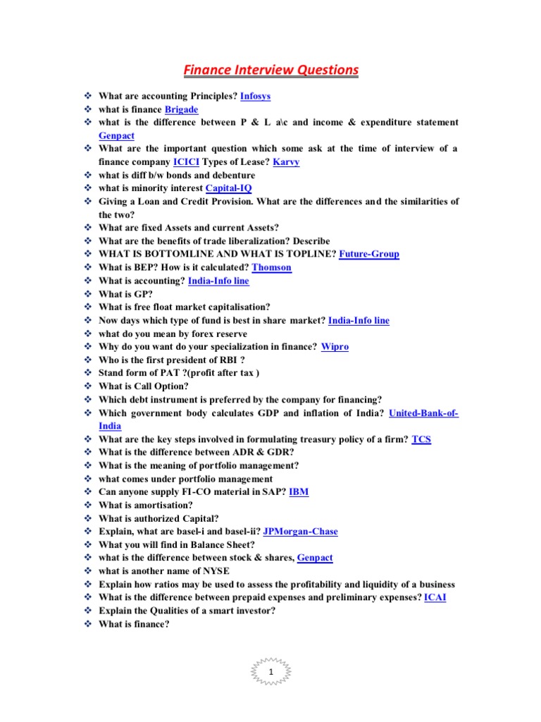 About interview questions answers interview questions answers. Tell us a time when you worked well with external auditors, audit committee and board of directors. It is important to know this because financial analysts need an understanding of accounting information, such as the income statement's line items, to properly evaluate the company's finances. 5 good questions to ask at the end of a financial analyst interview. Fp&a interview questions, pdf conclusion and next steps. 75 interview questions and answers • top 12 secrets to win every job interviews • top 8 interview thank you letter samples • top 7 cover letter samples • top 8 resume samples • top 15 ways to search new jobs top. Situation, task, action and result. Financial analyst interview pdf uploaded: Forget the headaches and nerves. Personality test, together with right answers to test questions. An a in financial accounting? Earnings per share present the amount of income that can be designated to one share in a company. Interview landed for your dream financial analyst job?check!